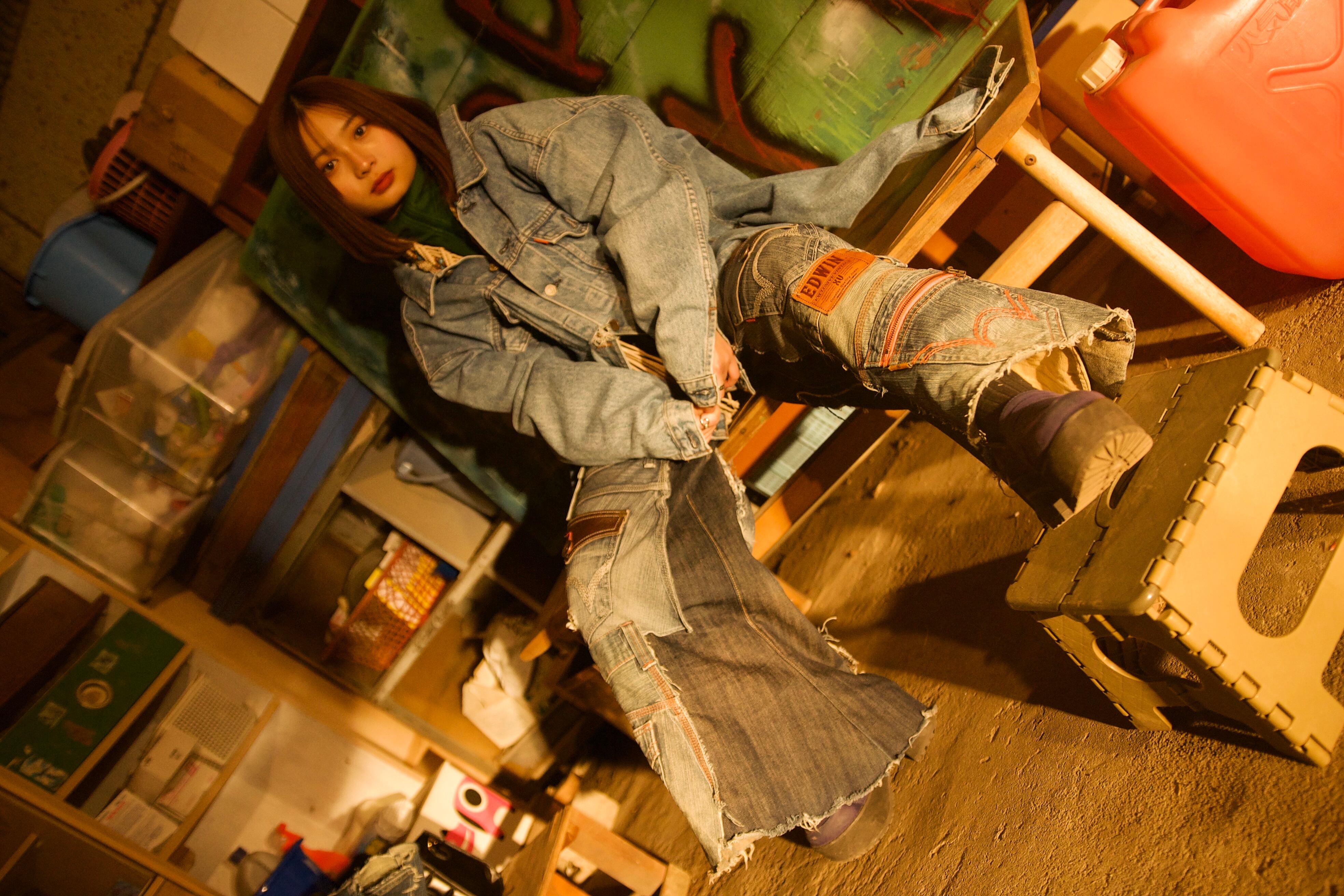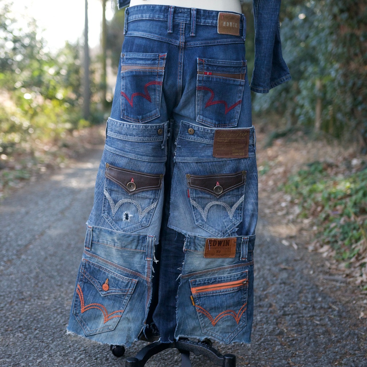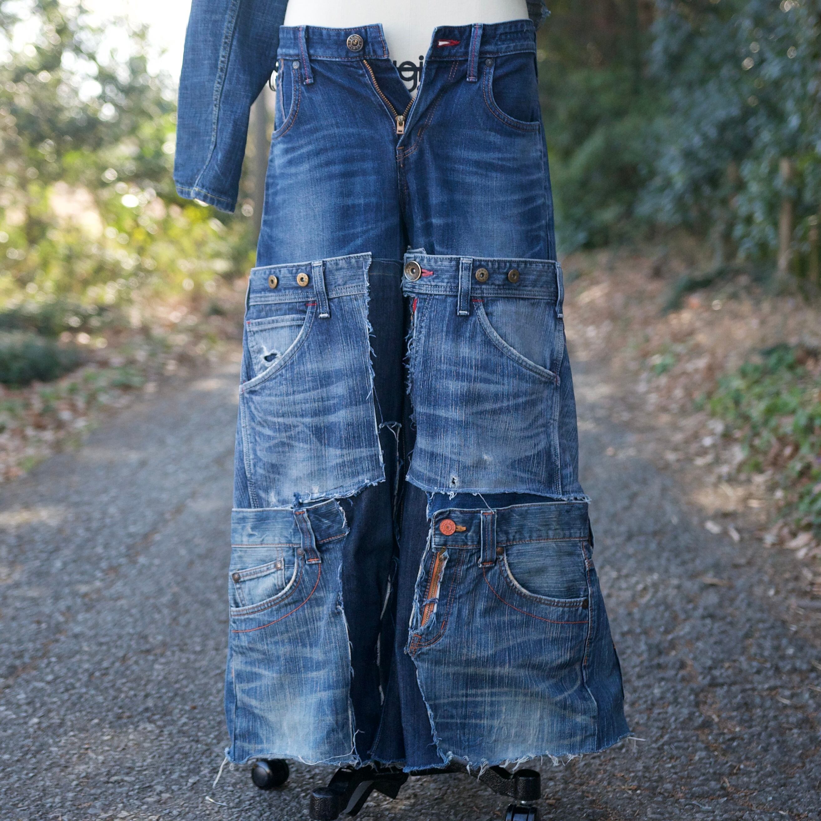 EDWINのデニムパンツを4枚使ってデニムフレアパンツを製作しました。