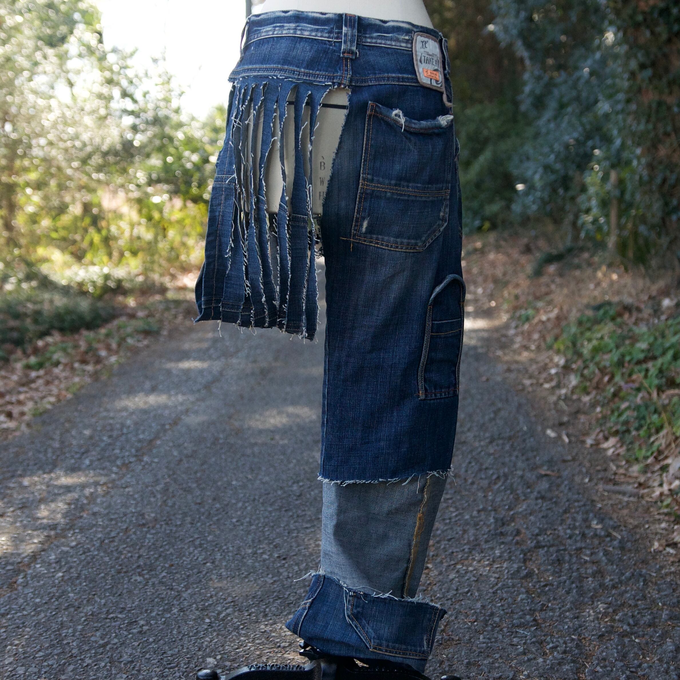 1leg fringe denim pants