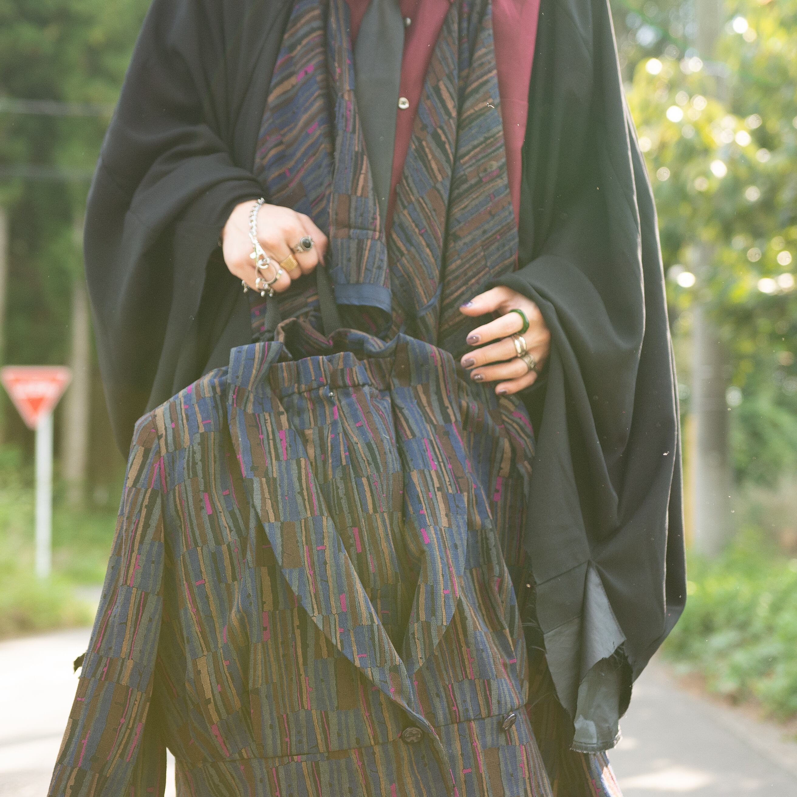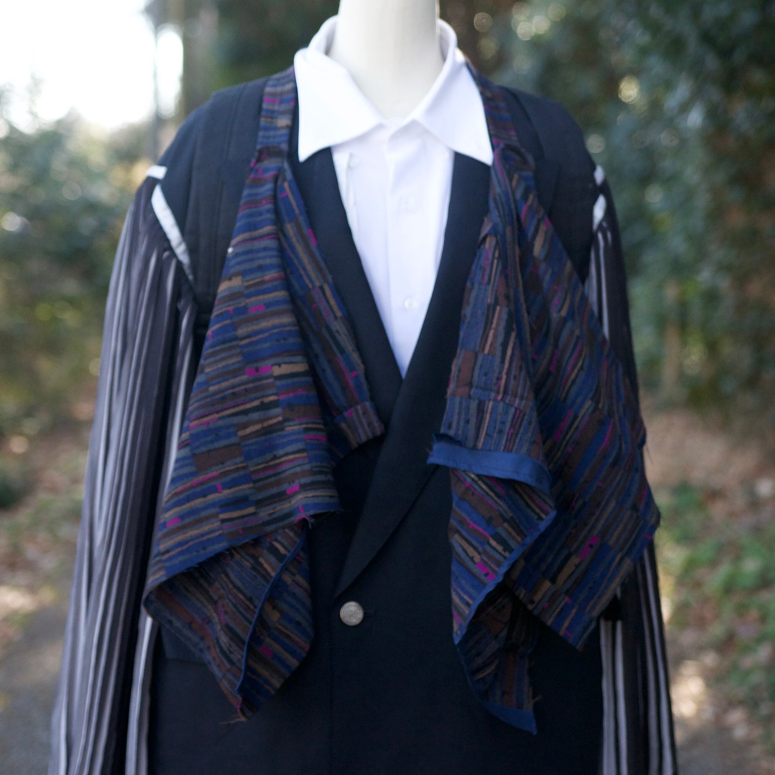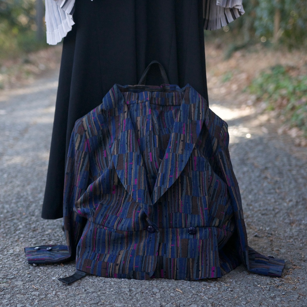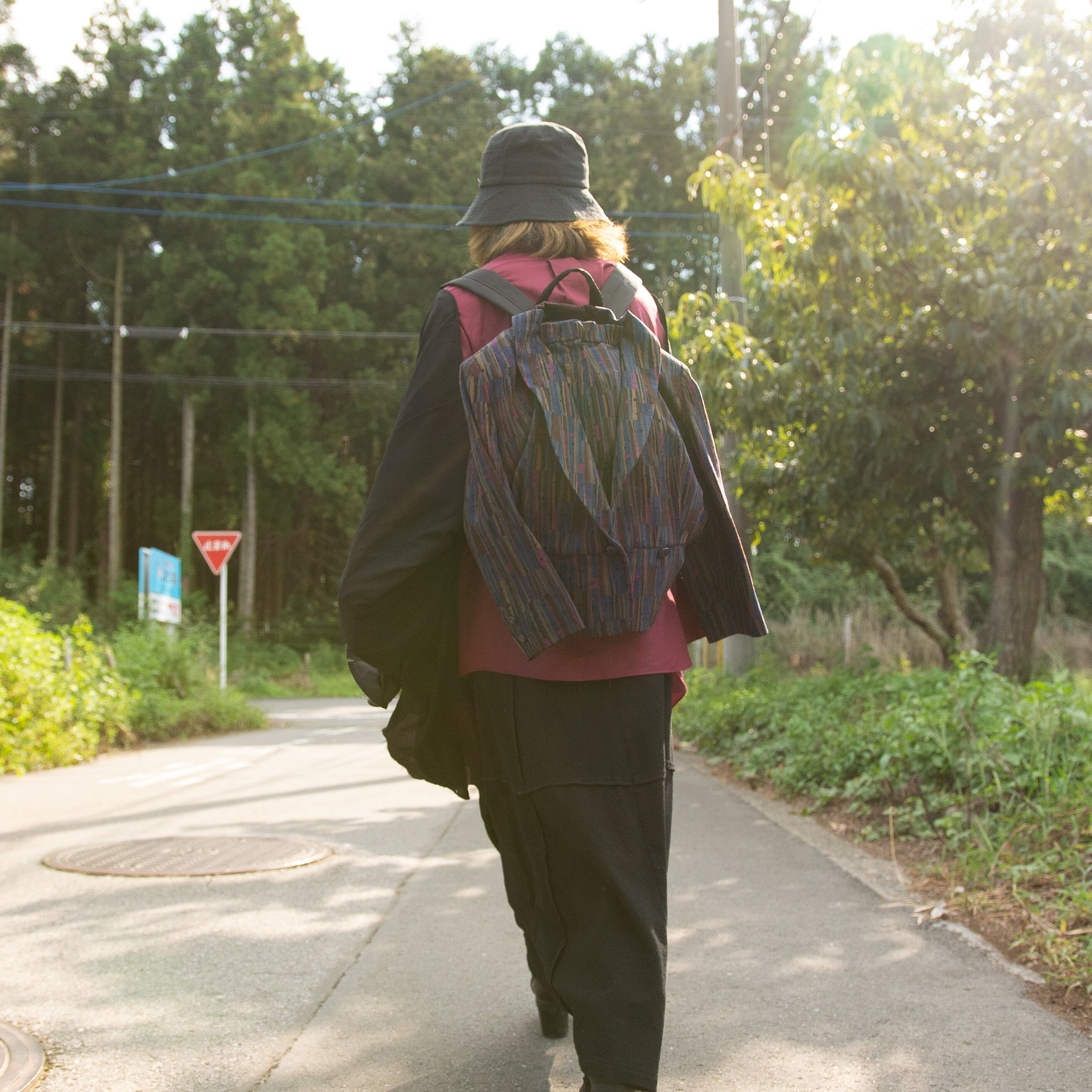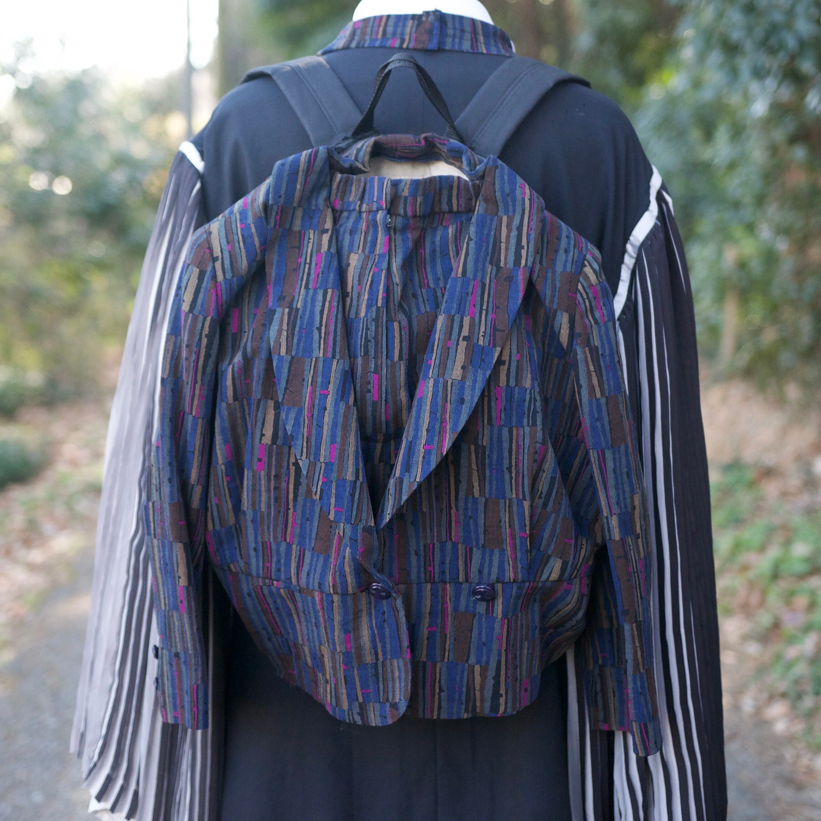 レディースのセットアップをリュックサック、肩から垂らすスカーフにリメイクしました。