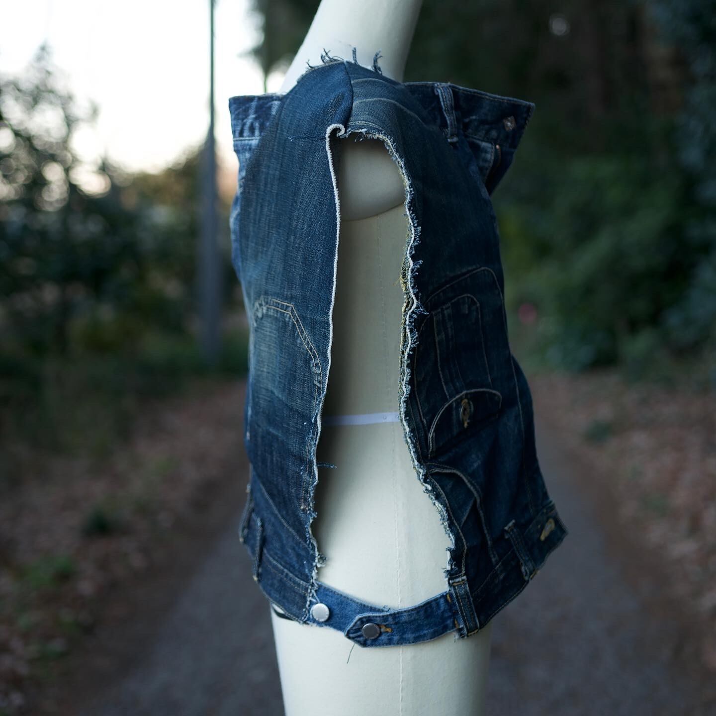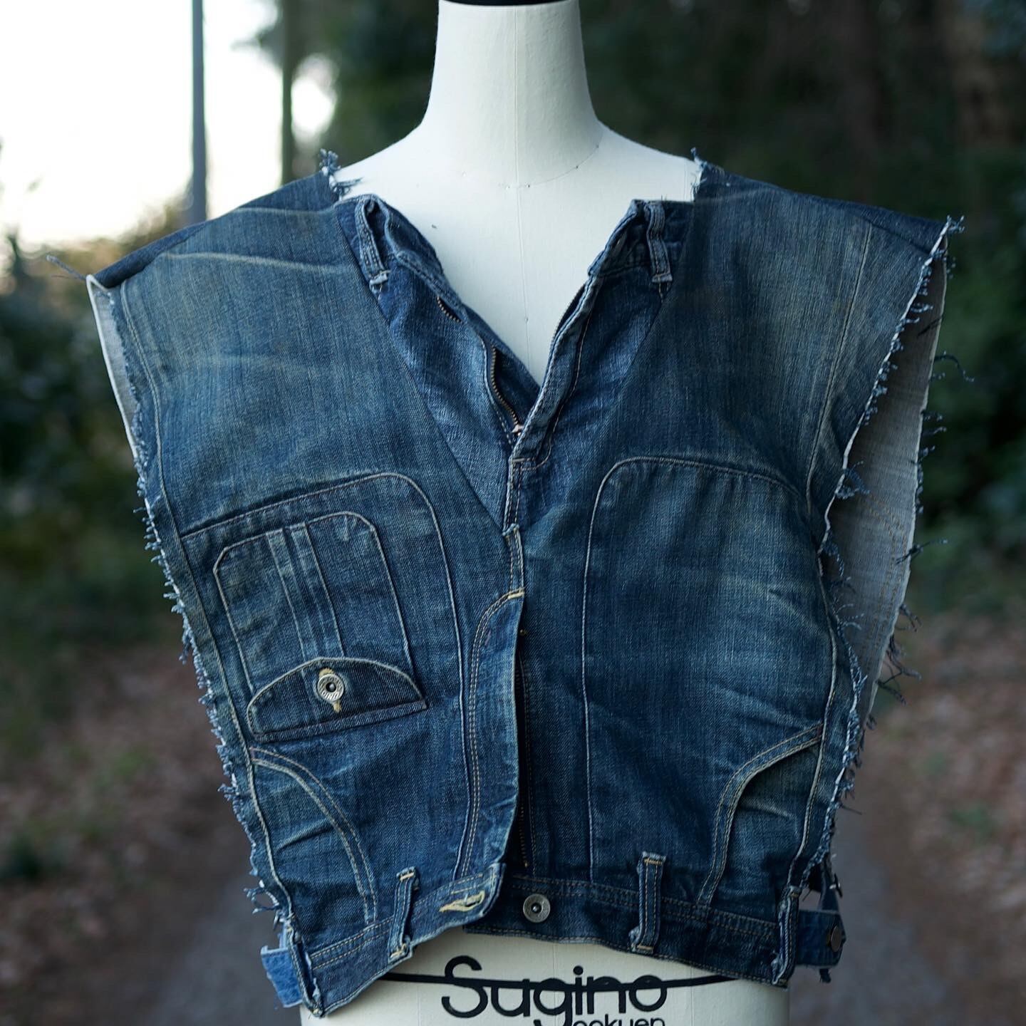 Leeのデニムパンツをノースリーブベストにリメイクしました。