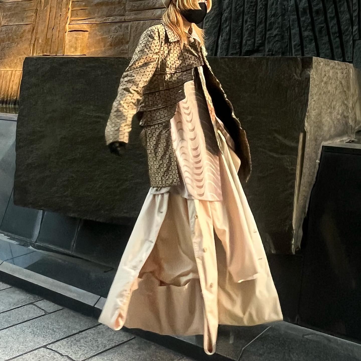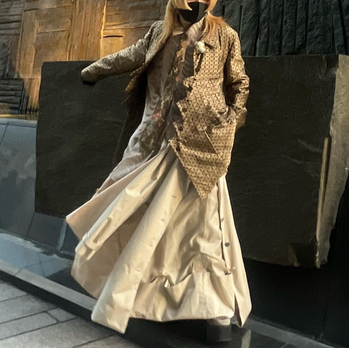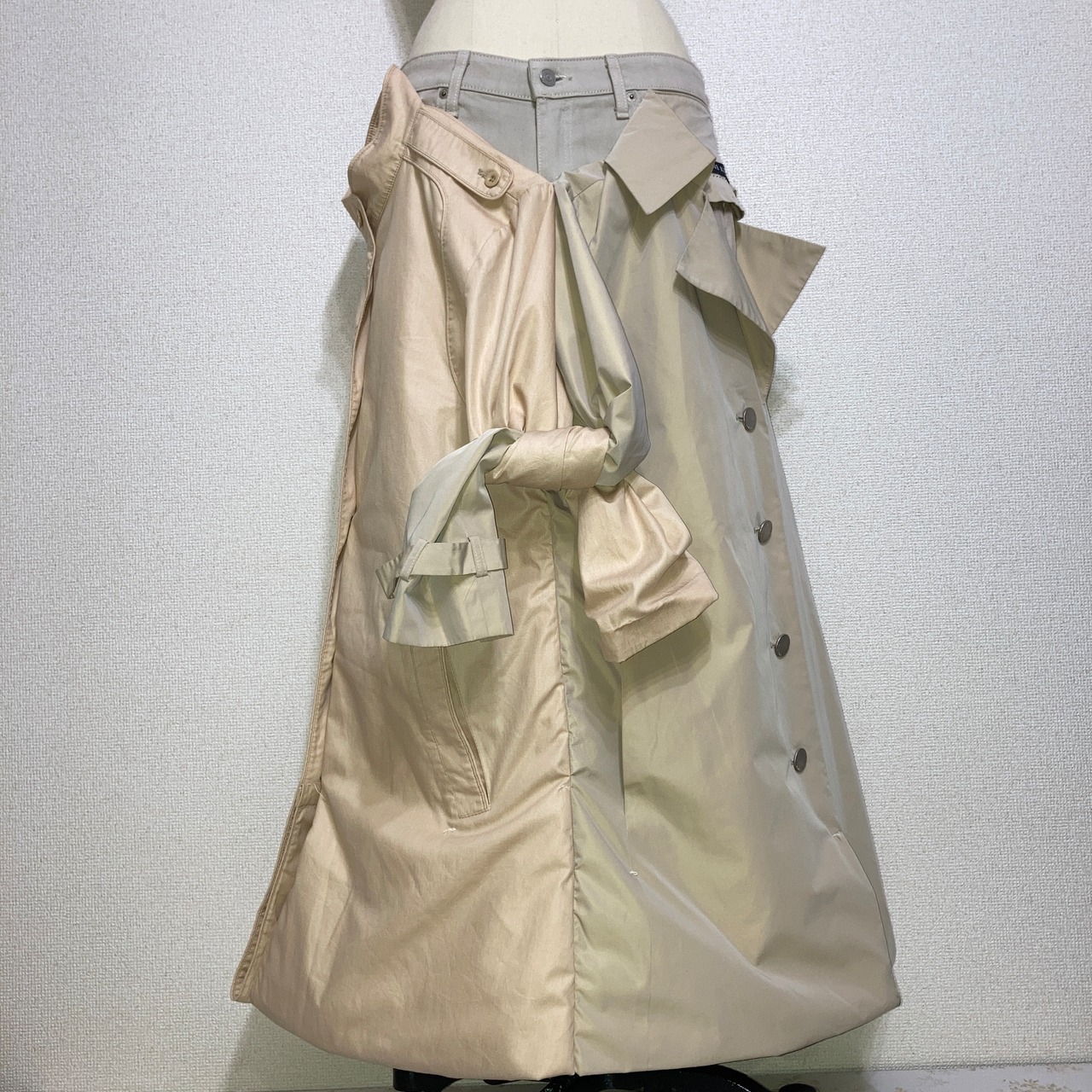 コートのボタンを開ける事でさらにドレープを効かせる事も可能(写真9枚目参照)