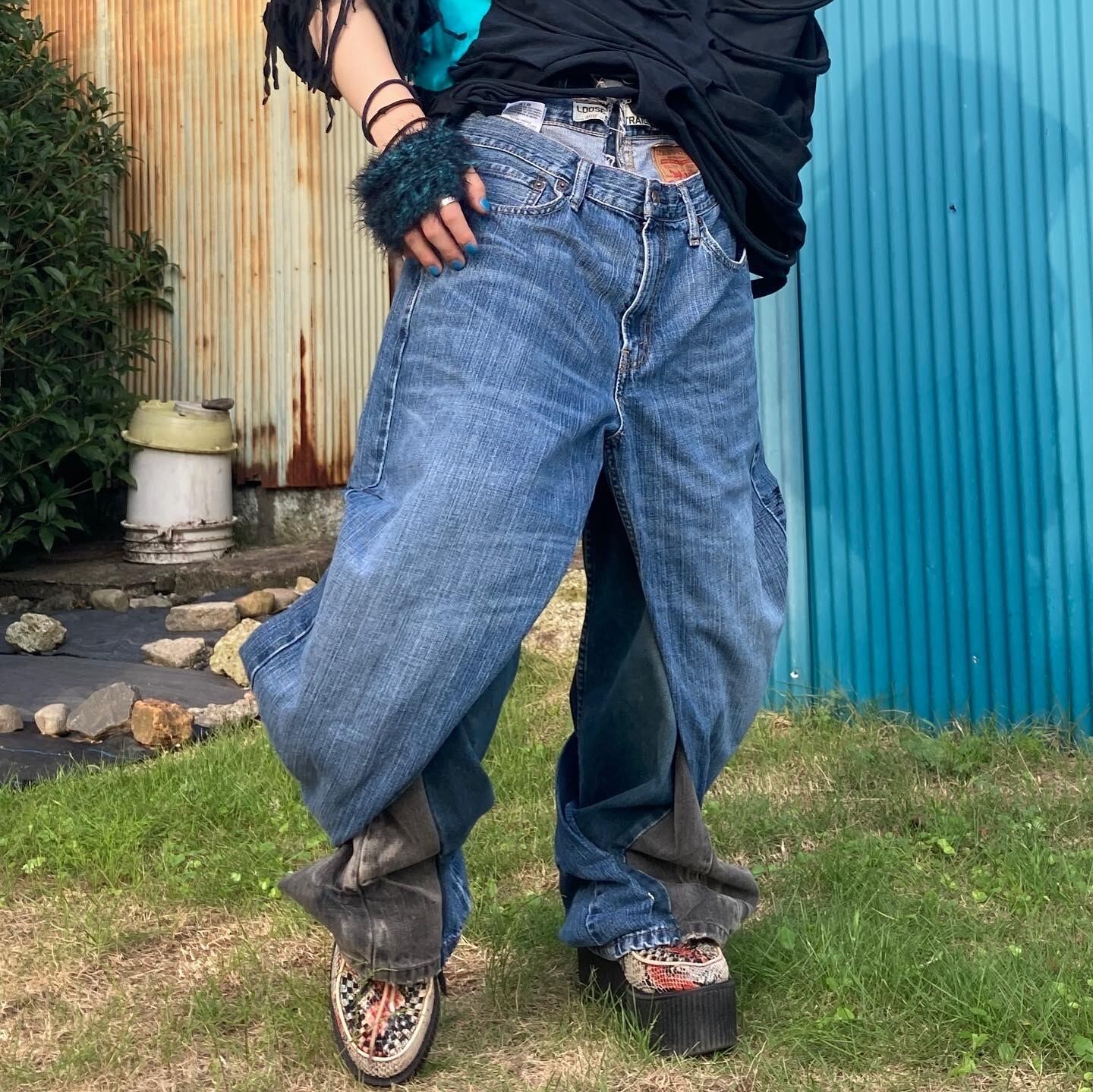 太いデニムパンツを履いている様に見えるのでストリートスタイルに合わせて履く事も可能。