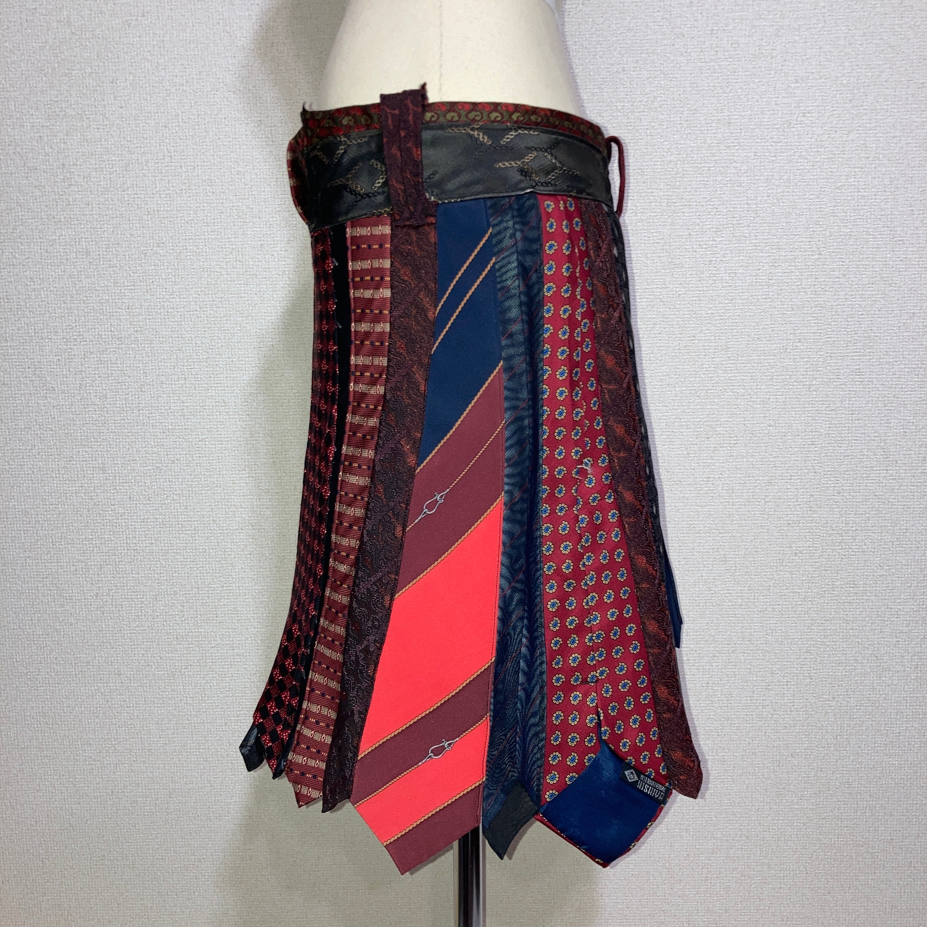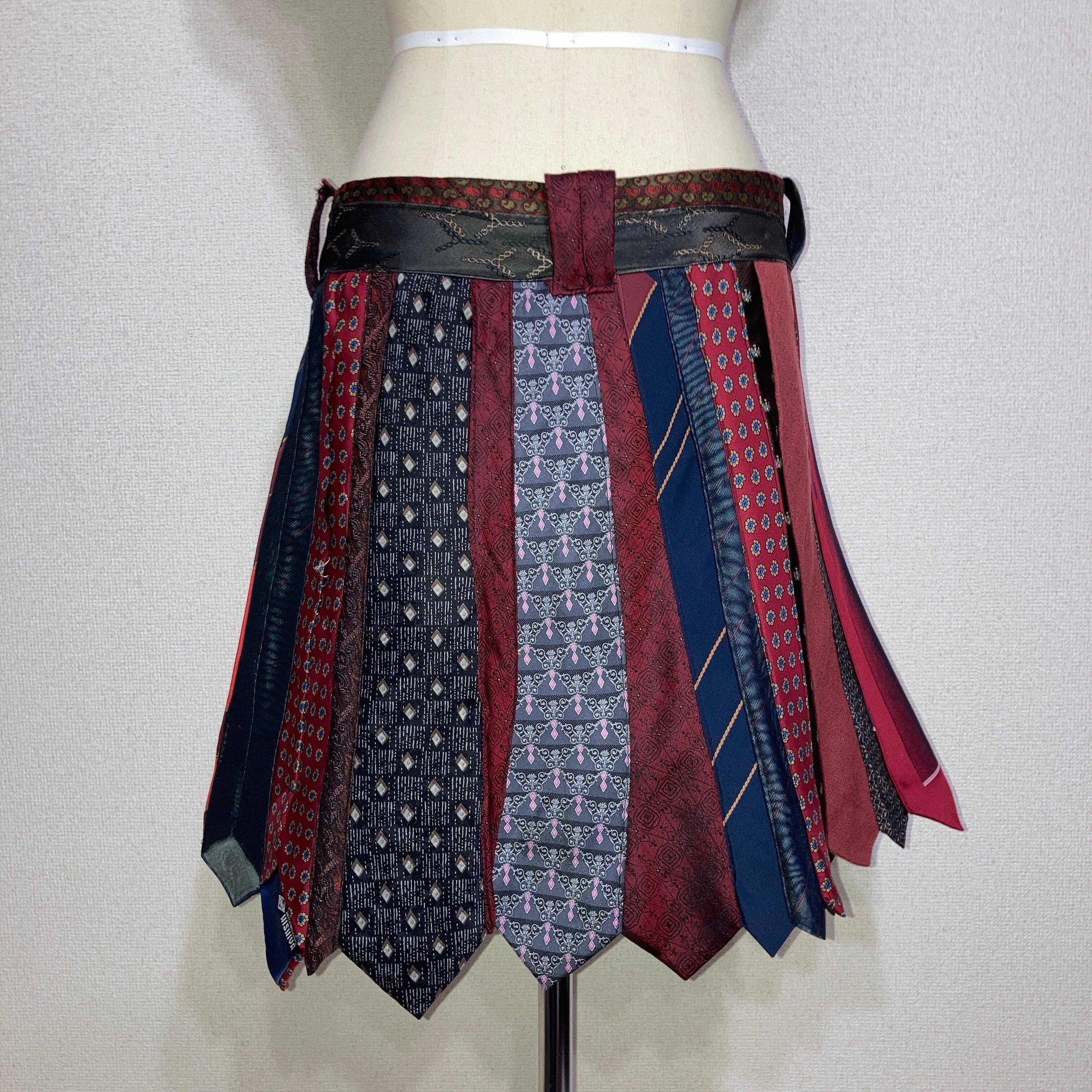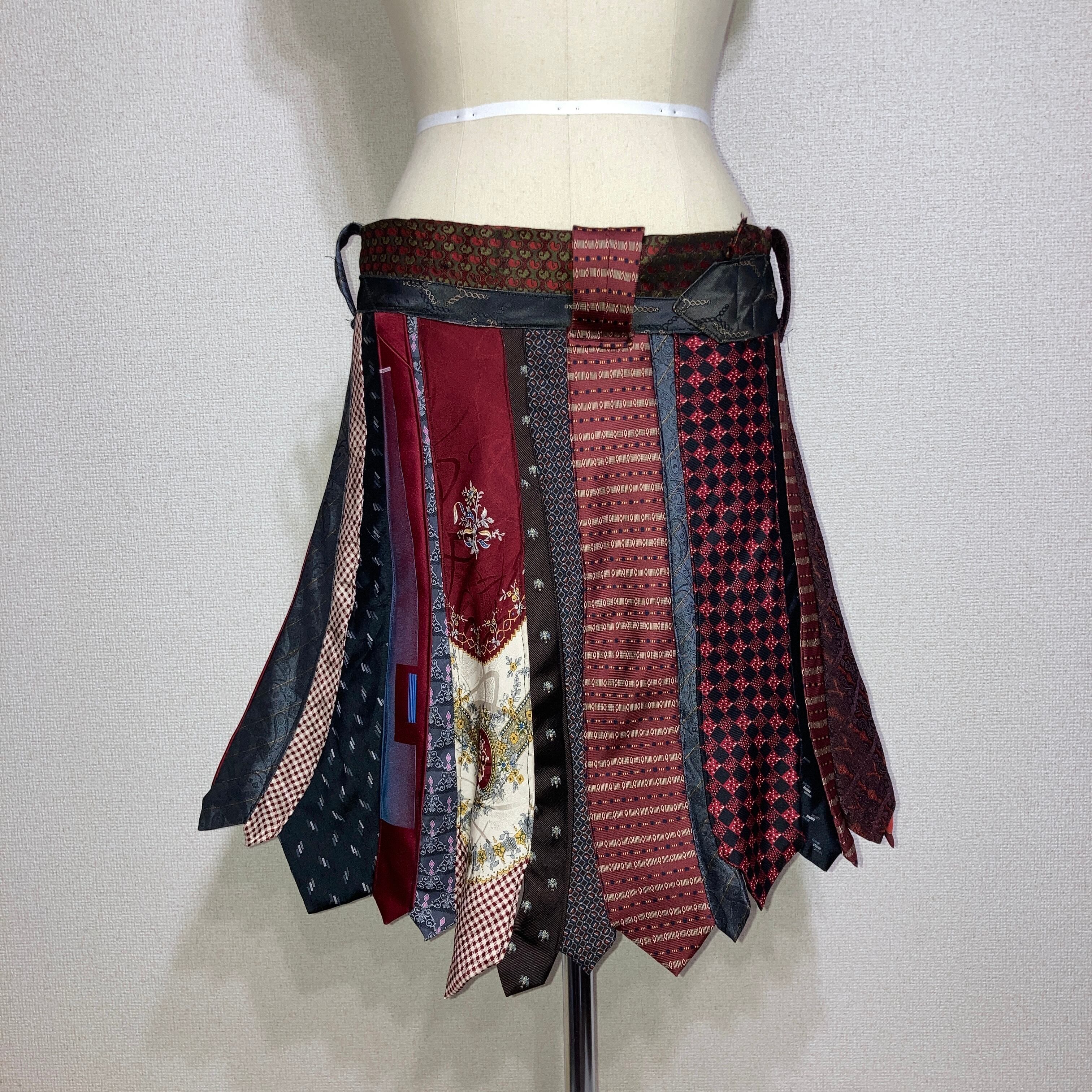 ネクタイを20本使用し、大剣の広がりを活かしフレアスカートを表現したリメイクスカート。