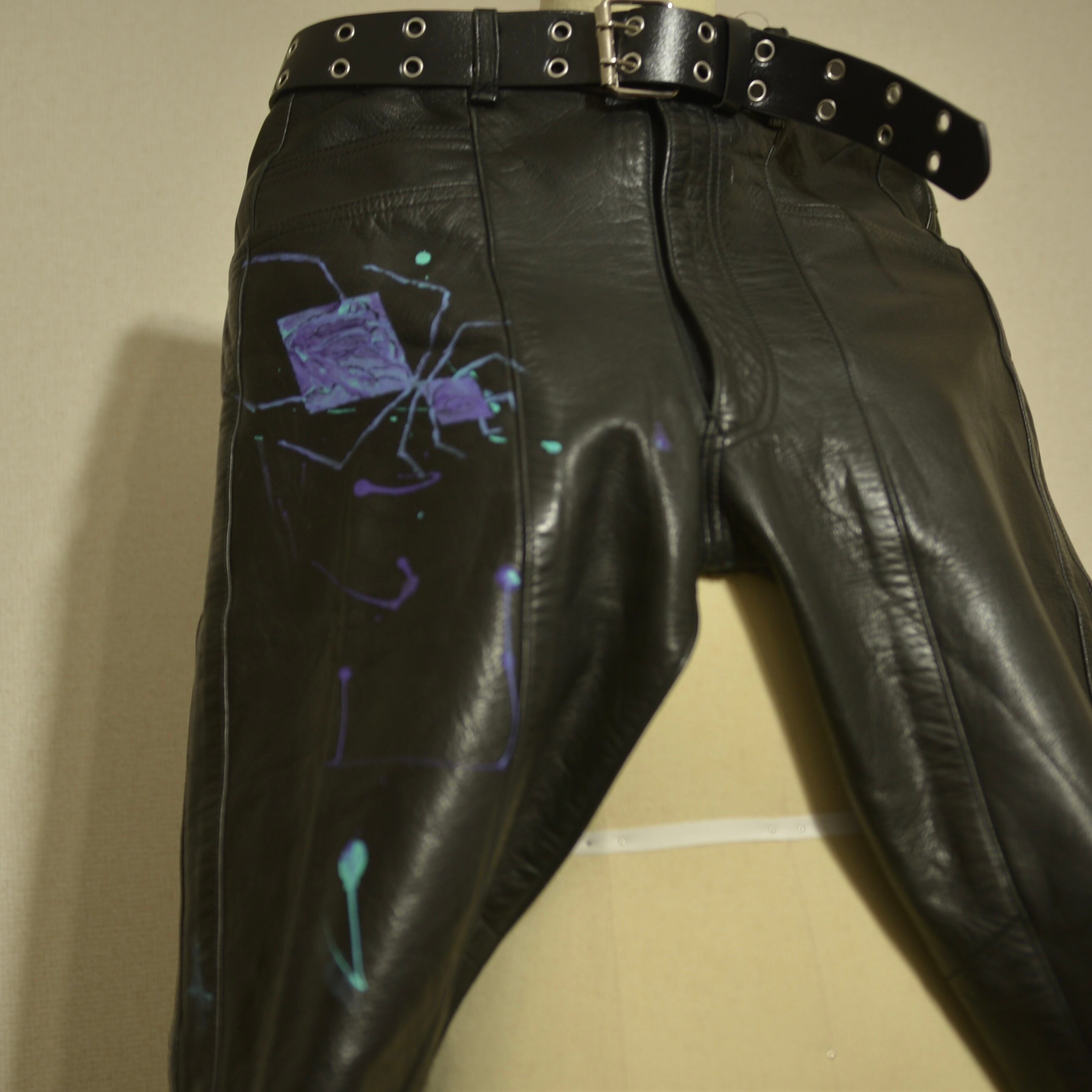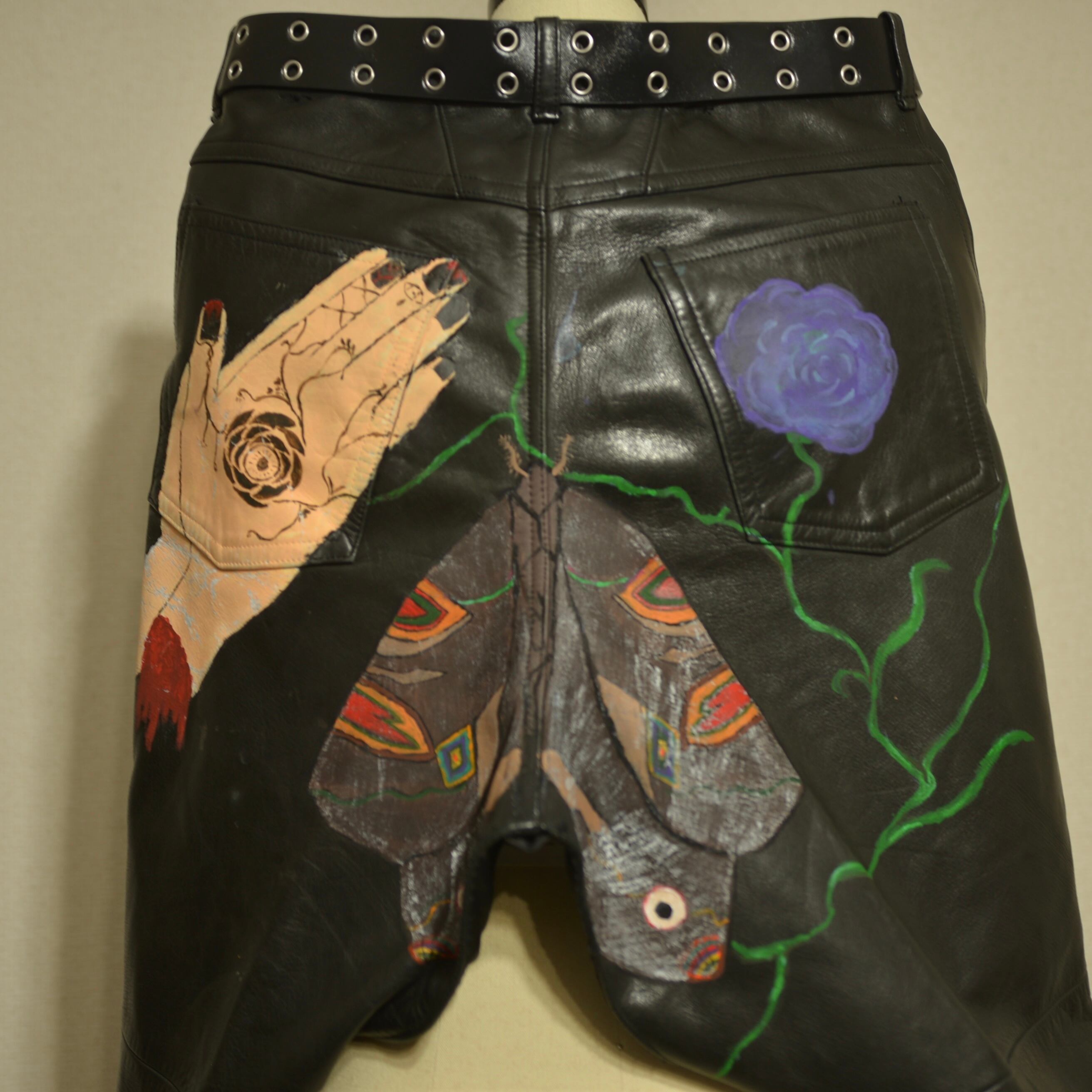 自分がパンツをリメイクし、前後にイラストを施していただいた。