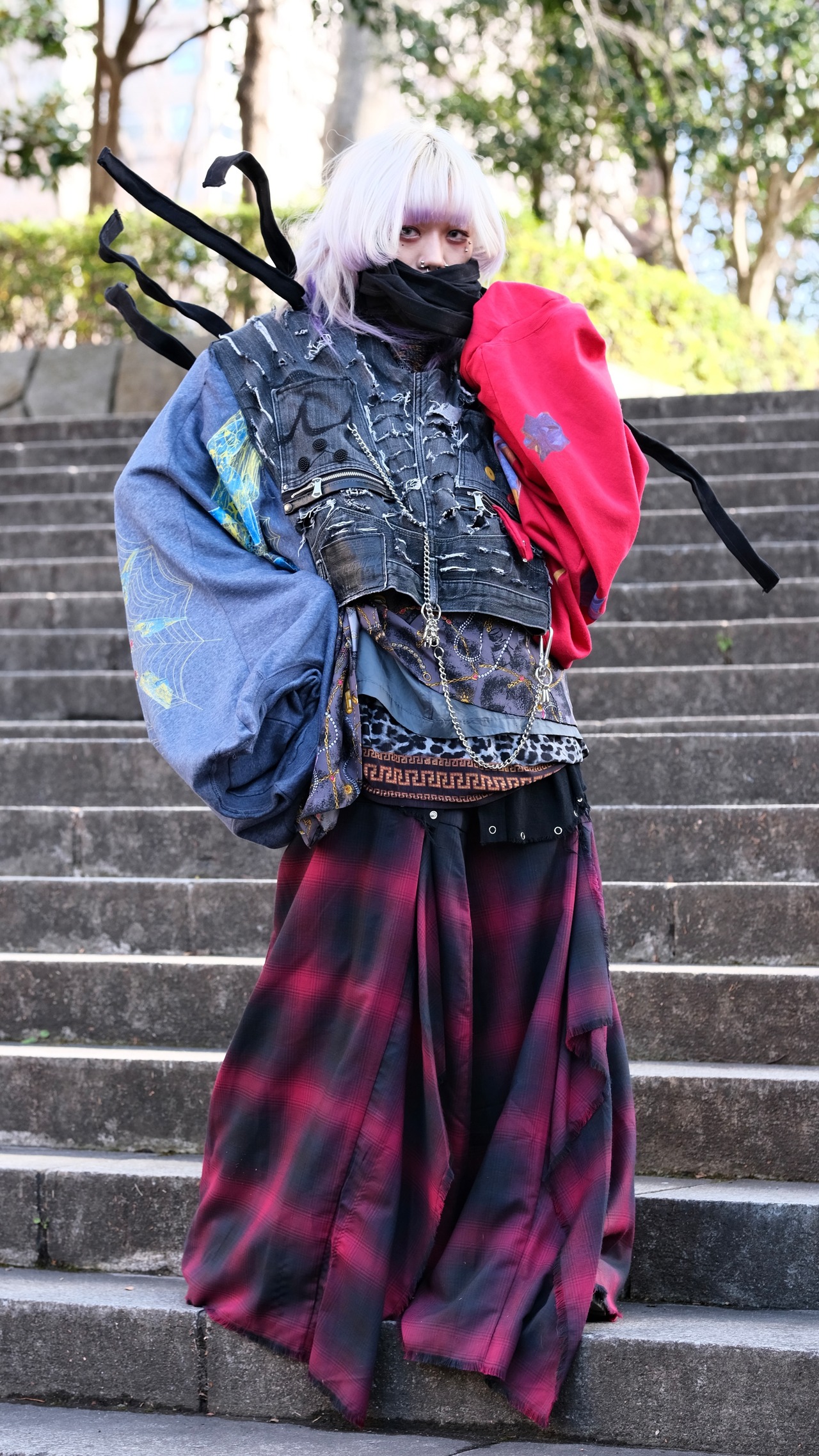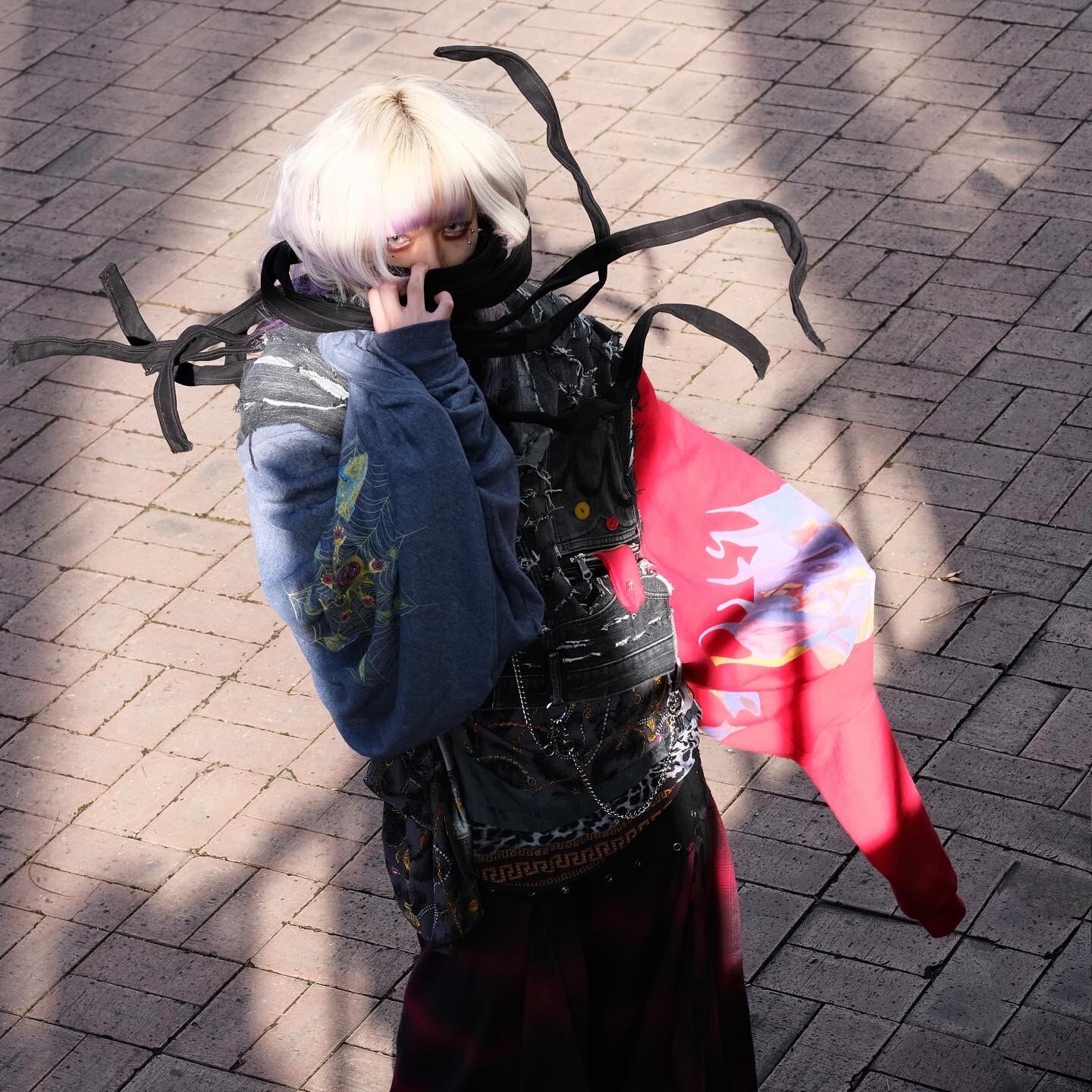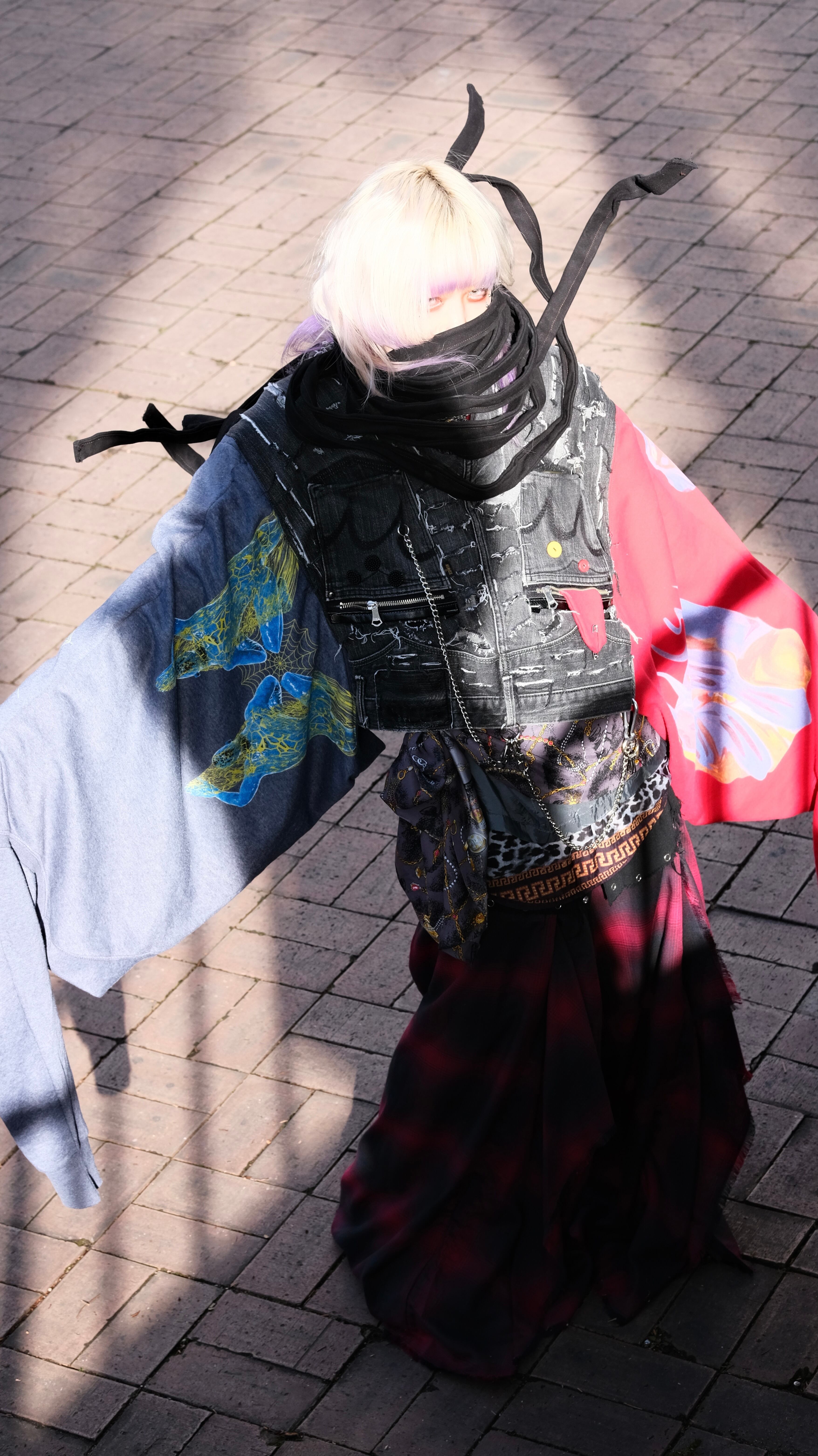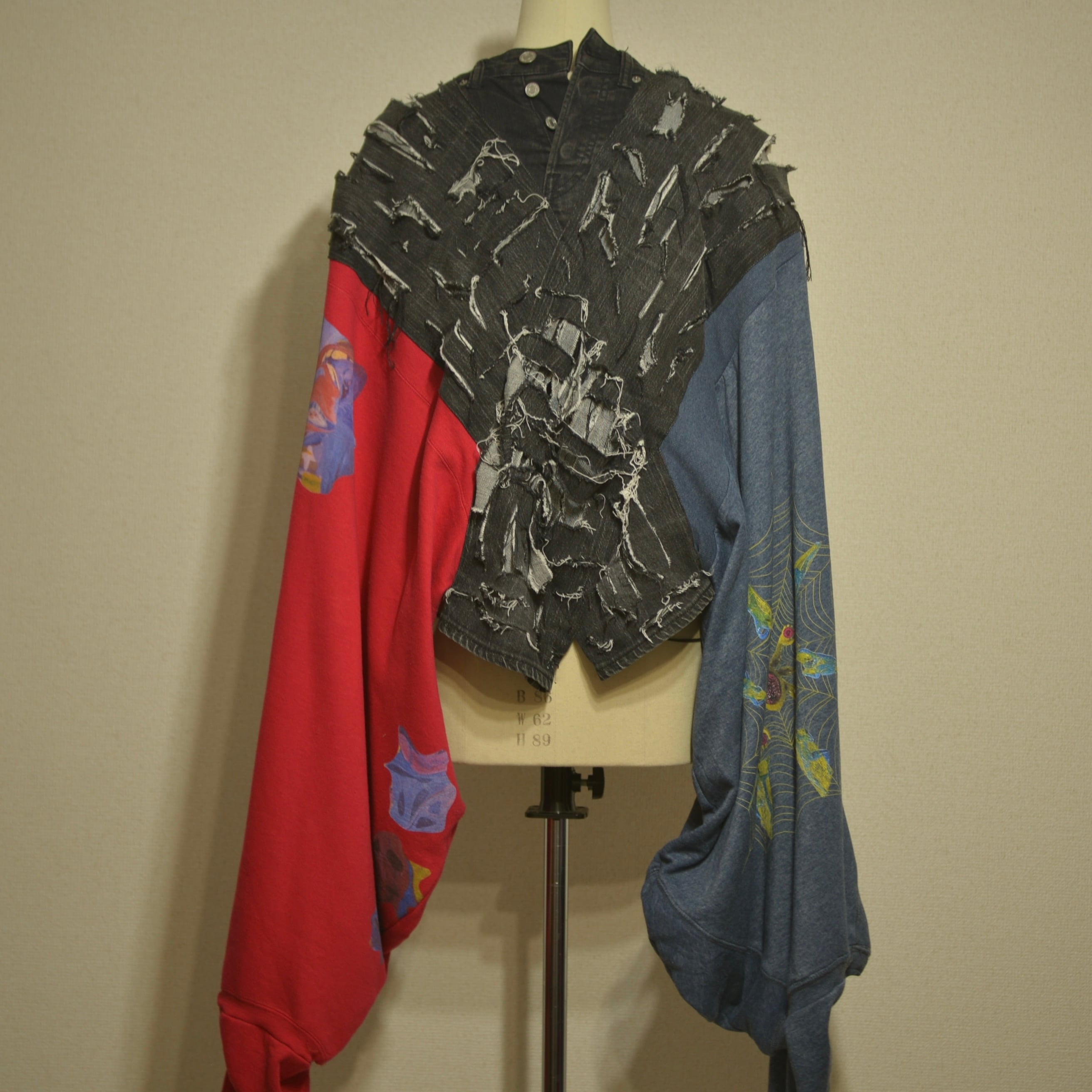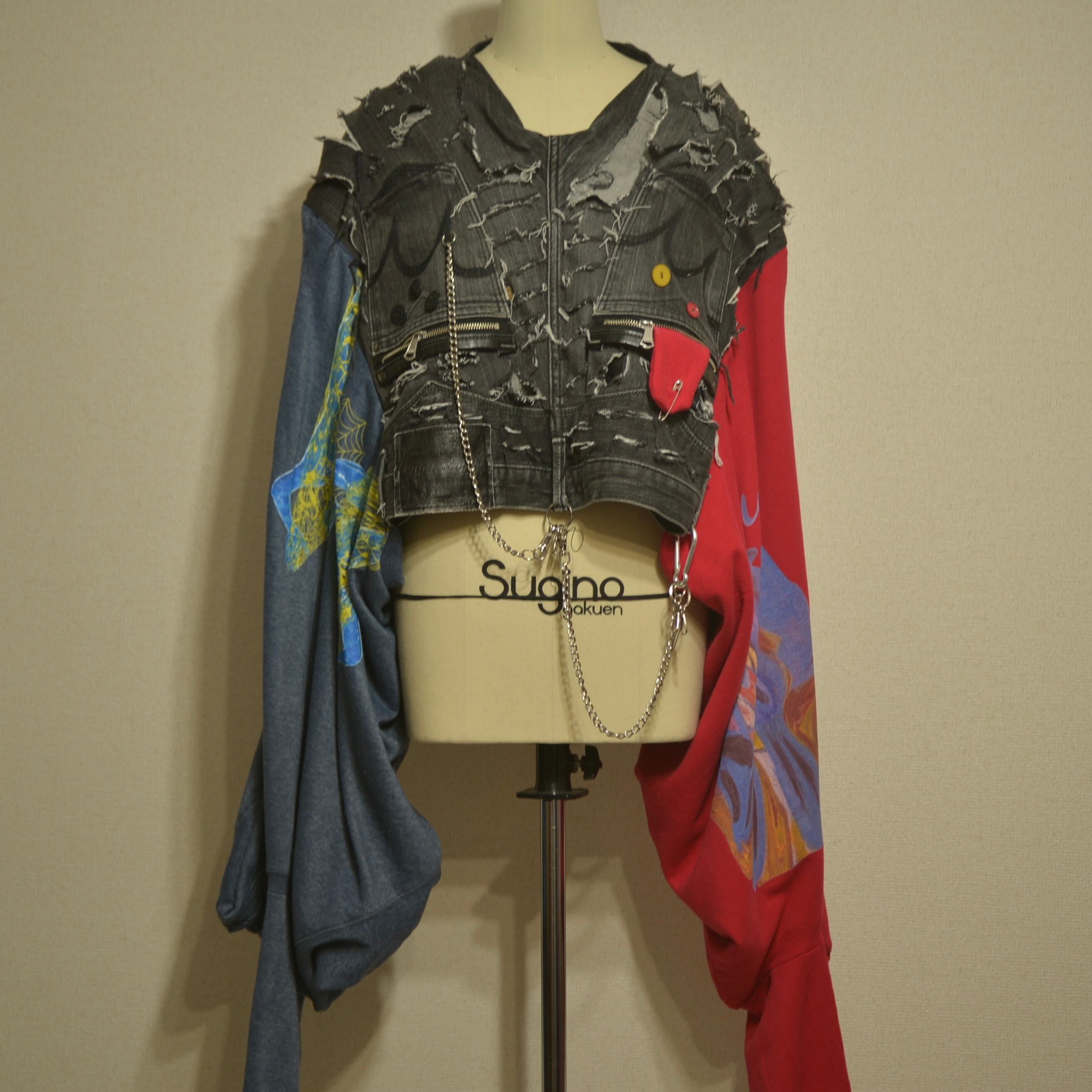 パンツをベースに @yet_no.not のスウェットを袖に、縫い付けた。