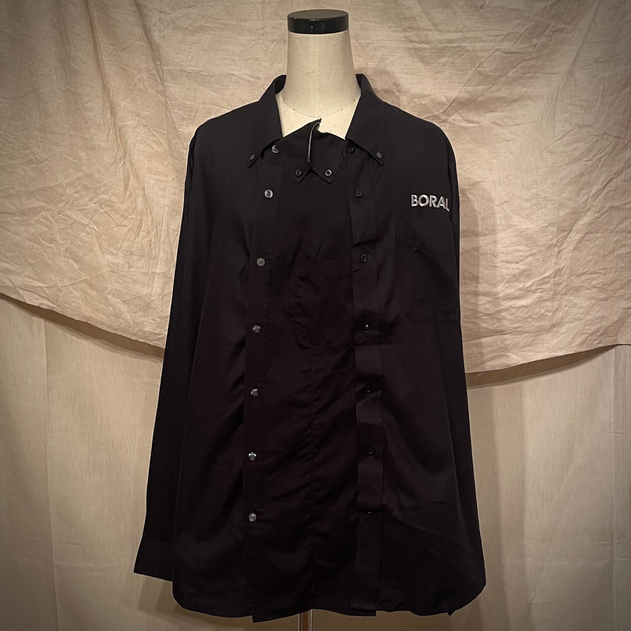 シャツの襟のみを前開きとネクタイのように縫い合わせたシャツ。是非ジャケットや羽織物と組み合わせたレイヤードを楽しんで欲しい一品。