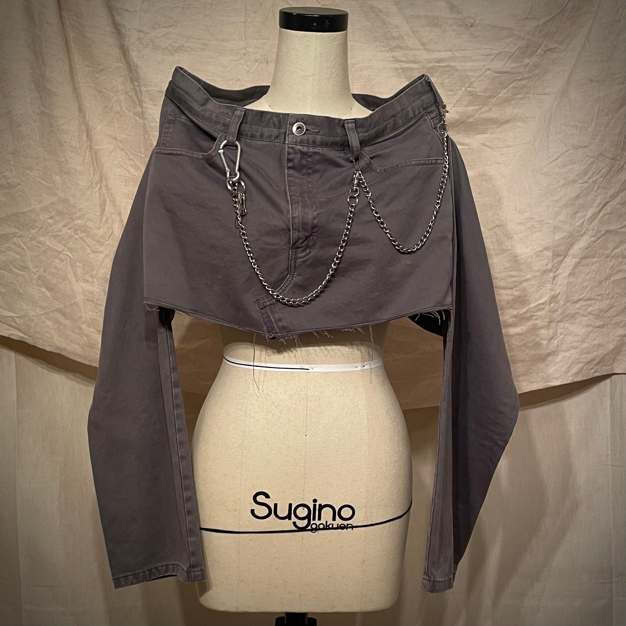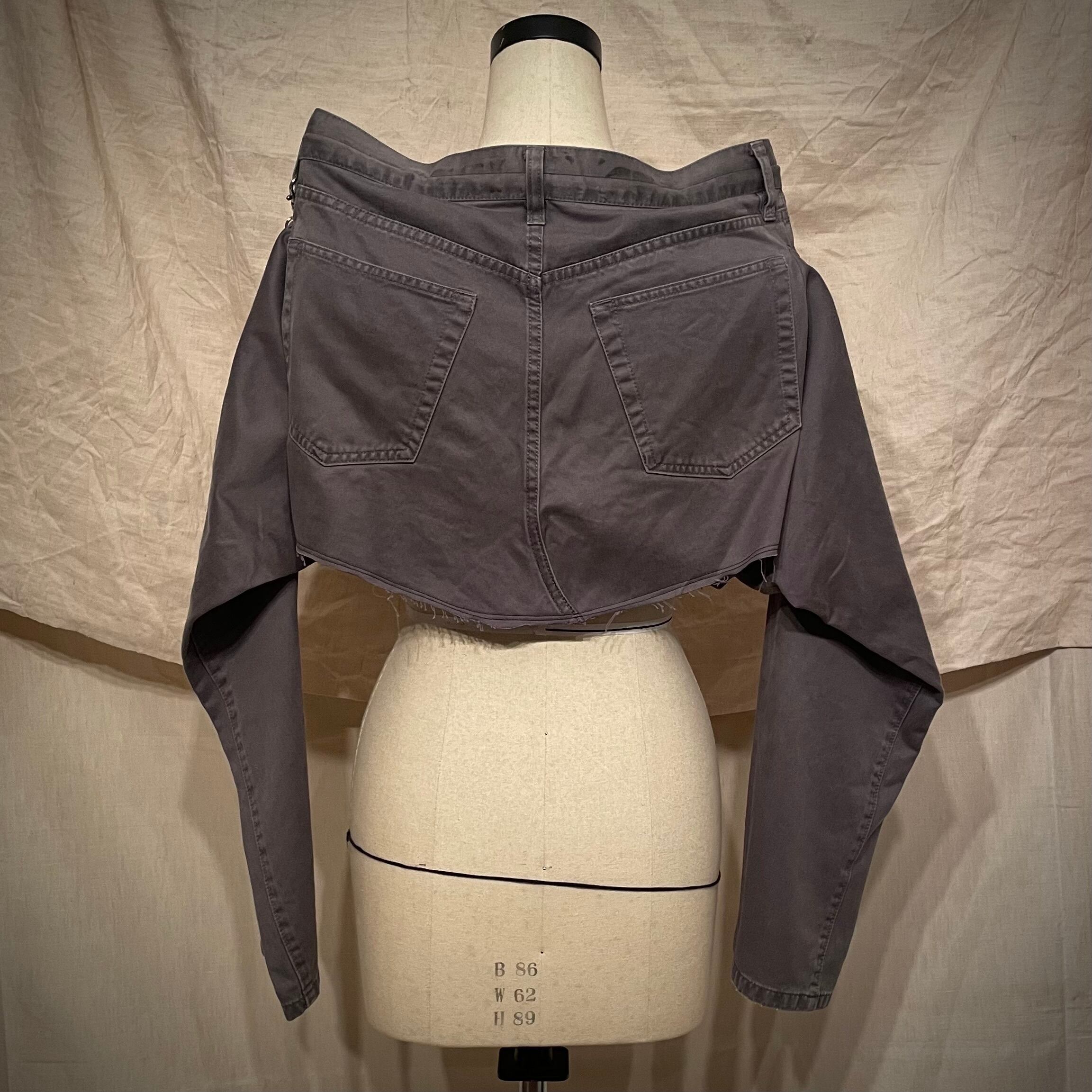 デニムパンツを頭から被れる短丈ブルゾンへとリメイク。